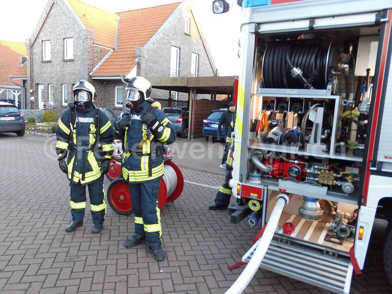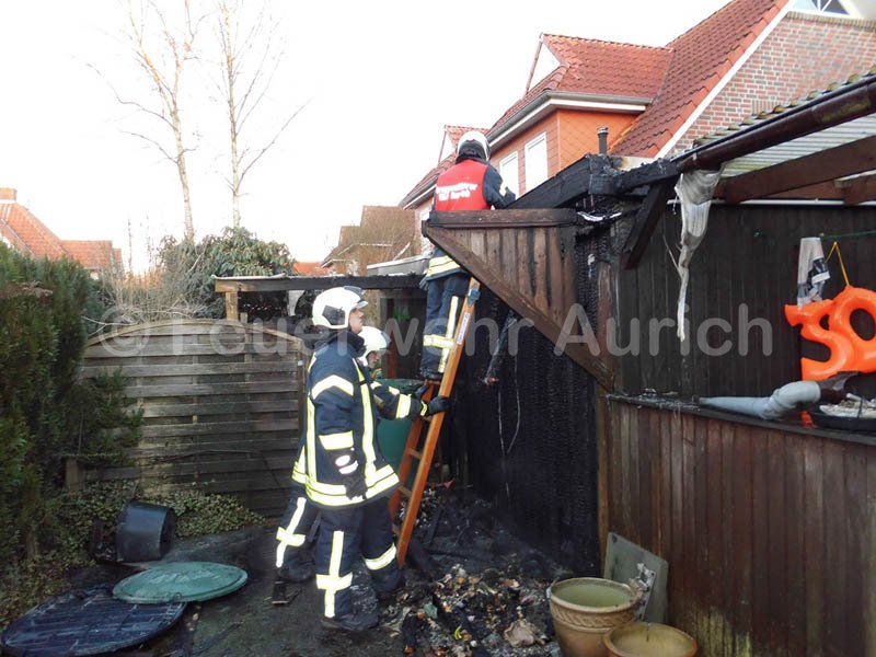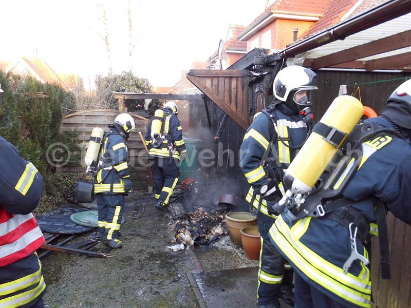 Am Sonntagnachmittag geriet die Rückwand eines hölzernen Anbaus zwischen zwei Wohnhäusern an der Straße "An't Lüttje Dörp" in Kirchdorf in Brand. Gegen 17.25 Uhr wurden die Feuerwehren Haxtum und Aurich sowie die DRK-Bereitschaft Aurich alarmiert.