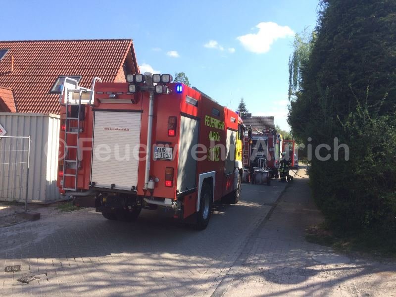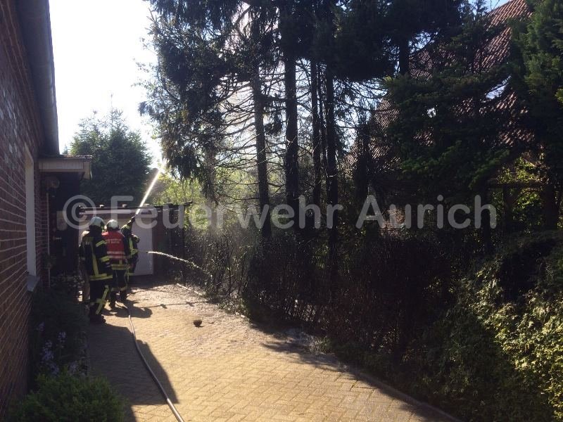 In der Straßen "Langer Kamp" brannten mehrere Meter Hecke, einige Bäume und Teile einer Pergola. Da sich das Feuer direkt an einer Garage befand, alarmierte die Leitstelle mit dem Einsatzstichwort "Mittelbrand". Vor Ort ergriffen die Anwohner zu den Gartenschläuchen und löschten den Großteil der Flammen eigenständig ab. Die Besatzung des HLF übernahm Restlöscharbeiten und öffnete einen kleinen Bereich des Garagendaches, um sicher zu gehen, dass sich das Feuer nicht dorthin ausgebreitet hatte. Nach etwa 30 Minuten konnte die Einsatzstelle wieder verlassen werden.