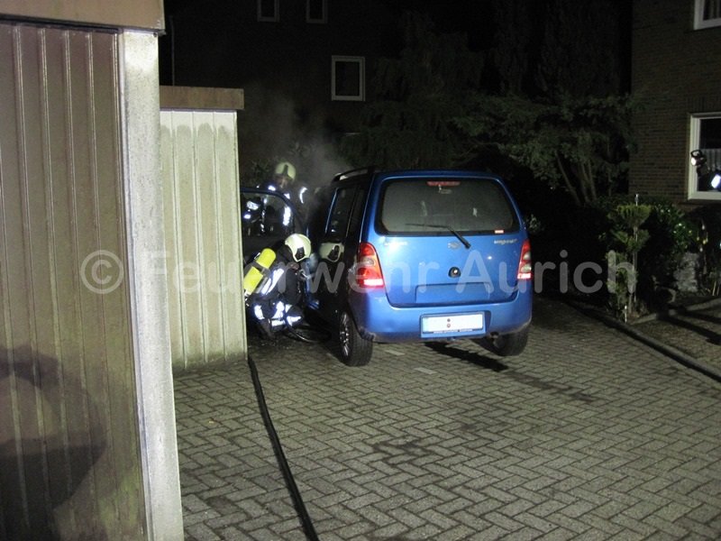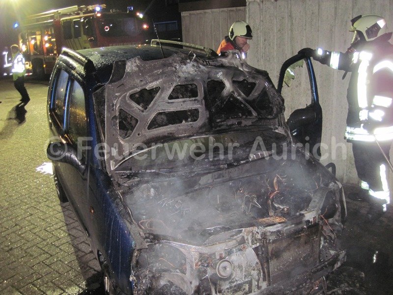 In der Nacht von Samstag auf Sonntag geriet ein Pkw im Hohegaster Weg aus noch unbekannter Ursache in Brand. Die Ortsfeuerwehr Aurich rückte mit drei Fahrzeugen aus, wobei das LF10 die Alarmfahrt aufgrund der ersten Lagemeldung abbrechen konnte. Ein Trupp unter Atemschutz löschte das Feuer mit dem Schnellangriff. Nach ca. 20 Minuten rückten die Einsatzkräfte wieder ab.
