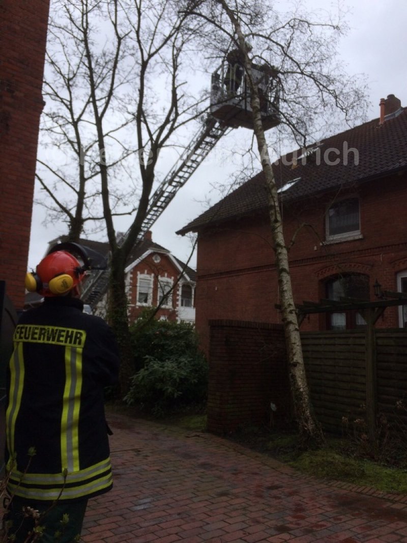 Da der Baum in der Krone des Nachbarbaumes hing, schnitt die Mannschaft der DLK einige Äste mit der Bügelsäge frei. Anschließend wurde die Birke zu Fall gebracht. Nach ca. 45 Minuten konnte die Kirchdorfer Straße wieder freigegeben werden.