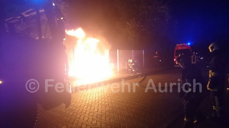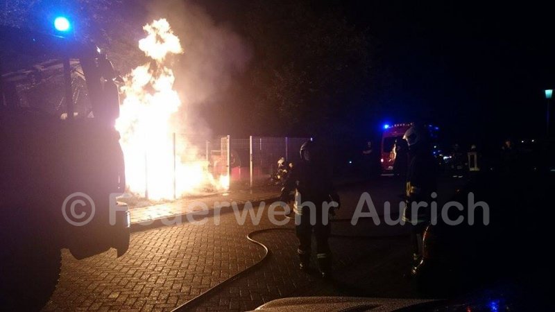 In der Nacht zum 14.07.2015 brannte aus ungeklärter Ursache ein Müllsammelbehälter in der Von-Bodelschwingh-Straße. Die Ortsfeuerwehr Aurich rückte mit 10 Einsatzkräften in zwei Fahrzeugen an und löschte den Kleinbrand über den Einsatz eines Atemschutztrupps und der Schnellangriffseinrichtung.