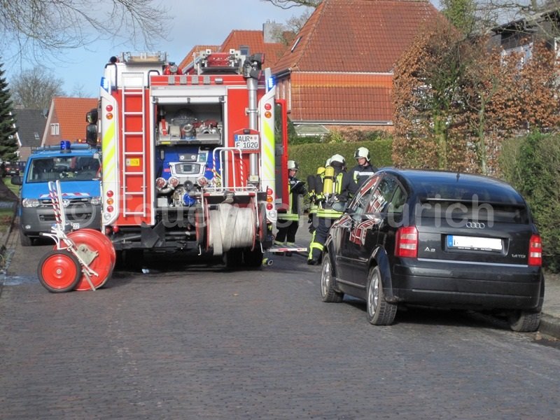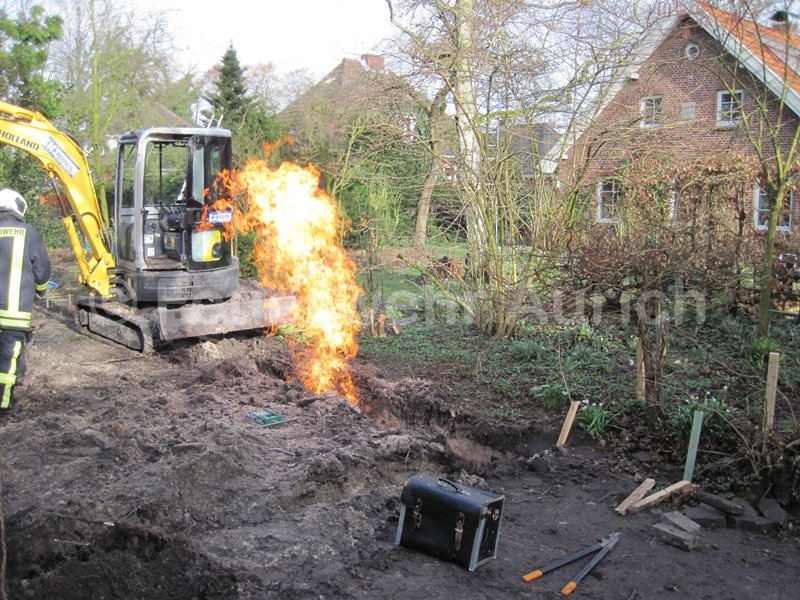 Die Ortsfeuerwehr Aurich wurde 09:11 Uhr mit dem Einsatzstichwort "F_ (für Feuer) Erkundung" zur einem Gasaustritt nach Bauarbeiten alarmiert.