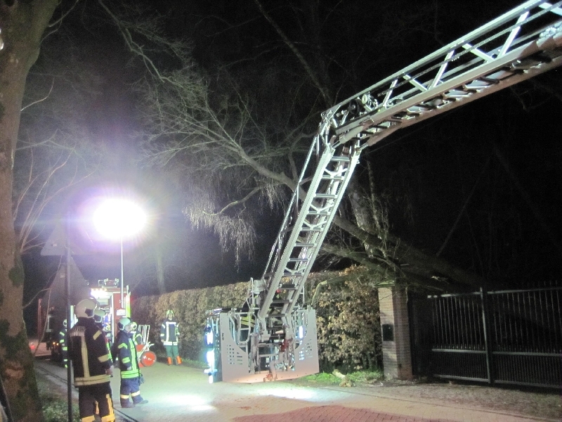 Trotz der lauen Frühlingsnacht kippte in der Straße "Grüner Weg" ein Baum auf einem Privatgrundstück um und hing mit seiner Krone über der öffentlichen Verkehrsfläche. Die Feuerwehr zerlegte den Baum soweit, dass für Passanten und Verkehrsteilnehmer keine Gefahr mehr bestand und verließ die Einsatzstelle nach ca. einer Stunde. Im Einsatz waren 13 Kameraden.