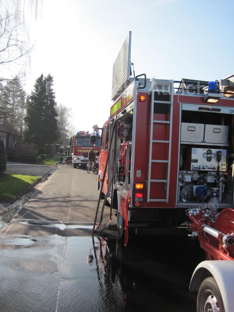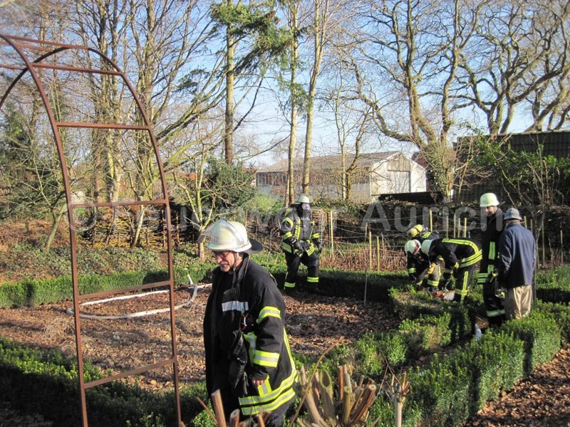 Gegen viertel nach drei wurde die Ortsfeuerwehr Aurich zur Unterstützung der Ortsfeuerwehr Wiesens nach Wiesens alarmiert. In einem Garten brannten aufgeschichtete Sträucher. Das Feuer konnte zügig von einem Trupp unter Atemschutz gelöscht werden.