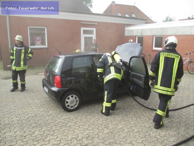 Am Montagvormittag hat der Fahrer eines Pkw sein Fahrzeug noch rechtzeitig auf den Parkplatz der Ortsfeuerwehr Aurich fahren können, bevor der giftige Rauch aus seinem Armaturenbrett dafür sorgen konnte, dass ein Atmen im Fahrzeug nicht mehr möglich war.