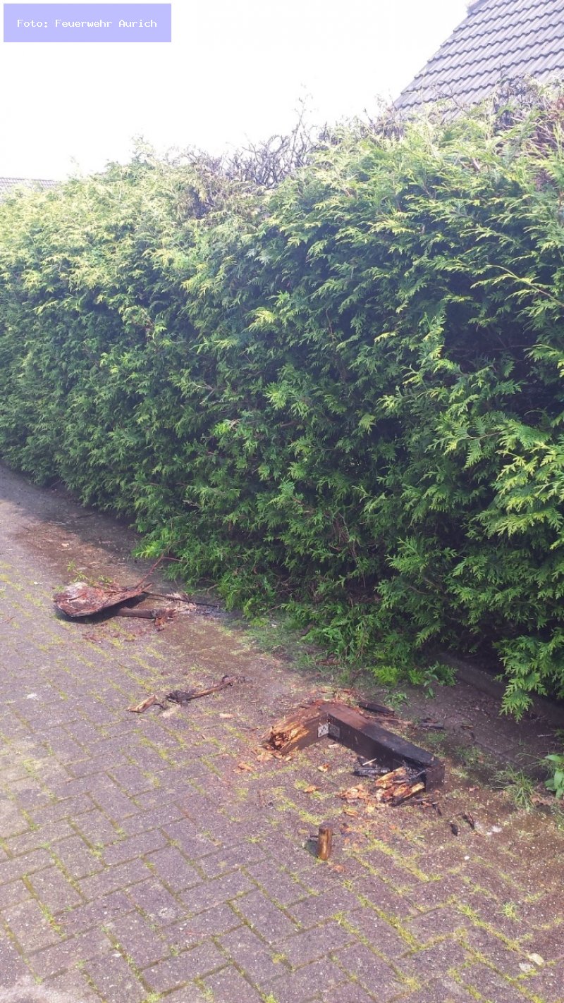 Heute Mittag kam es aus ungeklärter Ursache zu einem Heckenbrand im Albert-Schweitzer-Ring. Die Nachbarn links und rechts der Hecke versuchten den Brand mit zwei Gartenschläuchen und einem Pulverlöscher zu bekämpfen. Ein dritter Anwohner alarmierte die Feuerwehr.