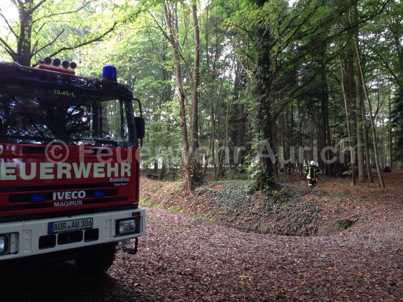 Am Freitagmittag wurde die Ortsfeuerwehr Aurich zu einem kleinen Flächenbrand im Popenser Gehölz alarmiert. Nach kurzer Erkundung wurde eine ca. 8 m² große brennende Fläche mitten im Wald gefunden. Zur Brandbekämpfung wurde das geländegängige LF 10/6 in den Wald gefahren. Da der Tankinhalt des LF jedoch nicht ausreichte um das Feuer zu löschen wurde eine 240 m lange Wasserversorgung vom, außerhalb des Waldes stehenden, HLF zum LF gelegt. Mit einer C-Leitung wurde das Feuer schließlich gelöscht.
