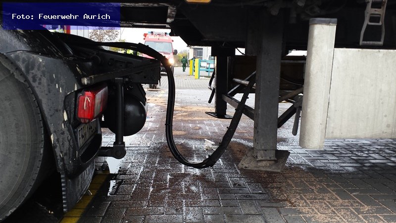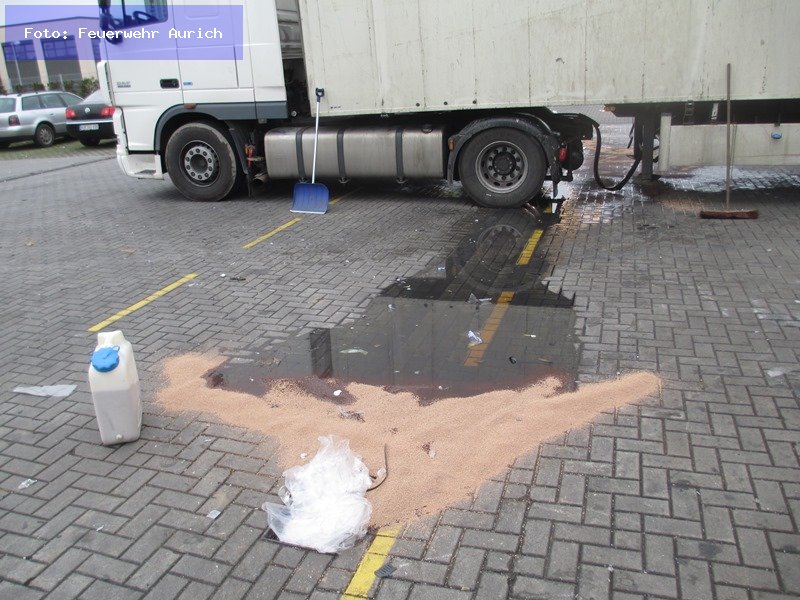 Am Vormittag des 14.11.2014 wurde die Ortsfeuerwehr Aurich in das Gewerbegebiet nach Schirum gerufen. Bei einem Lastkraftwagen war kurze Zeit zuvor ein defekter Hydraulikschlauch der Grund für auslaufendes Öl. Die Feuerwehr streute einen Damm aus Ölbindemittel, bevor das Öl in die Oberflächenentwässerung fließen konnte. Mit dem Eintreffen einer Firma zur Aufnahme und Beseitigung des Öls war der Einsatz nach ca. 45 Minuten beendet.