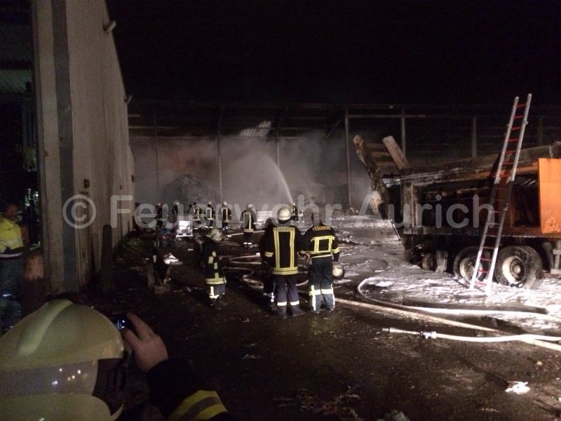 Im Industriegebiet Georgsheil in der Gemeinde Südbrookmerland war es zu einem Großbrand in einem Entsorgungsbetrieb gekommen. In einer offenen Halle brannten Kunstoffabfälle auf ca. 1000 m². Da das Feuer mit Wasser alleine nicht unter Kontrolle zu bringen war, mussten große Mengen Schaummittel eingesetzt werden. Im Verlauf des Einsatzes entschied man sich, die Ortsfeuerwehr Aurich mit dem Gerätewagen Logistik 2 Komponente Schaum anzufordern. Kurz nach der Alarmierung rückten der GWL 2 und auf Anordnung des Stadtbrandmeisters auch ein MTF zur Einsatzstelle aus.