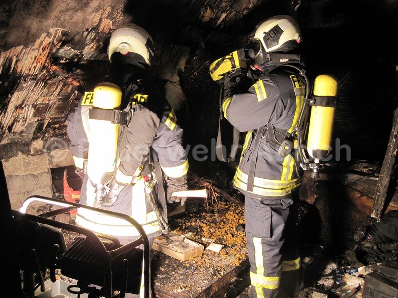 Die Meldung „Feuer aus“ konnte ca. 45 Minuten nach der Alarmierung an die Leitstelle weitergegeben werden. Im Einsatz waren der ELW, das HLF 20/20, die DLK und das LF 10/6 mit 20 Kameraden und das Deutsche Rote Kreuz zur Eigensicherung der Einsatzkräfte.