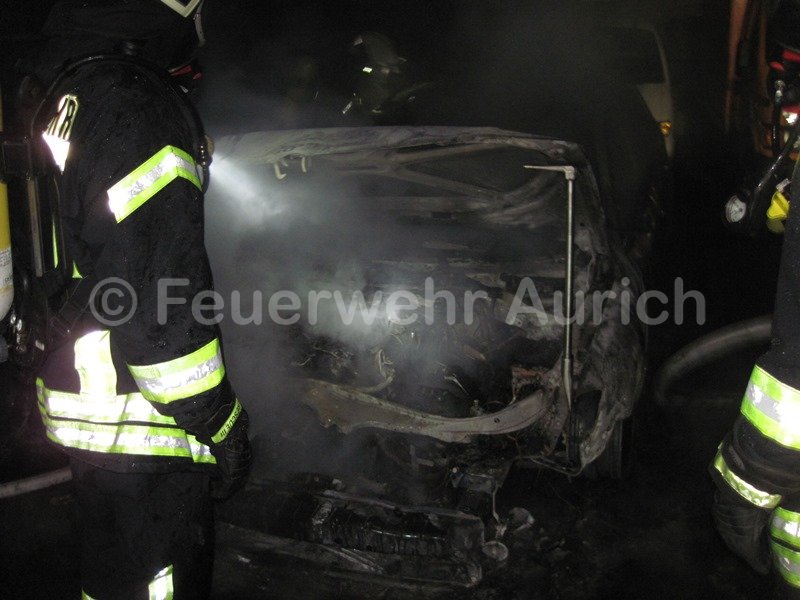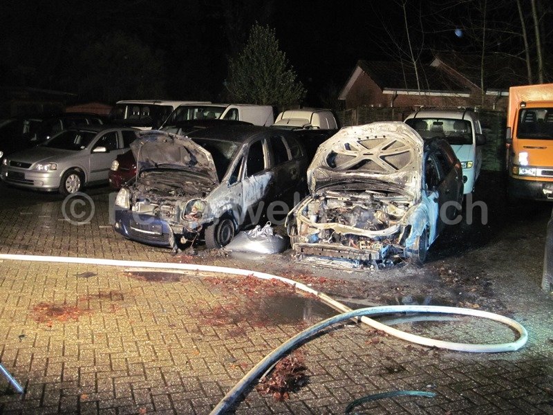 Die Leitstelle alarmierte die Ortsfeuerwehr Aurich gegen 4 Uhr zur Einsatzstelle in die Esenser Straße. Beim Eintreffen des ELW und HLF brannten bereits zwei Pkw im Bereich der Motorenräume. Das Feuer drohte auf die nebenstehenden Fahrzeuge überzugreifen. Zwei Atemschutztrupps begannen sofort mit der Brandbekämpfung. Somit konnte weiterer Sachschaden verhindert werden.