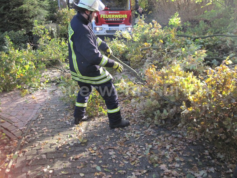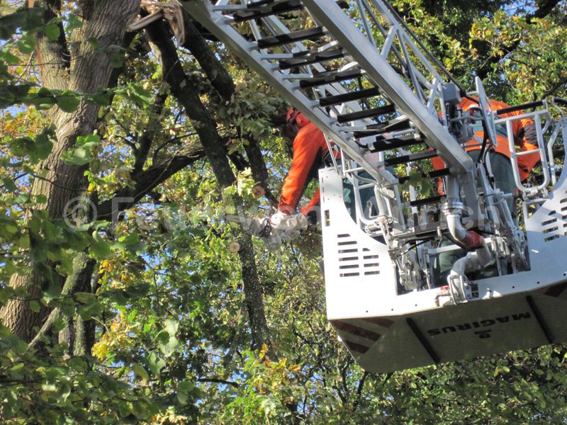 Am Samstagvormittag wurde die Ortsfeuerwehr Aurich zu einer Baumbeseitigung gerufen. Aufgrund des starken Windes war eine Baumkrone aus einer Eiche gebrochen und drohte auf die Straße zu fallen. Die Baumkrone wurde entfernt und die Gefahr gebannt.