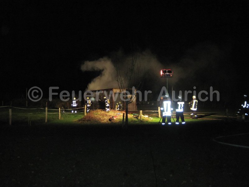 Gegen kurz nach halb neun wurde die Ortsfeuerwehr Aurich zur Unterstützung der Ortsfeuerwehr Wallinghausen alarmiert. An der Wallinghausener Straße brannte ein Schuppen, in dem Heu gelagert wurde. Die Ortsfeuerwehr Aurich baute eine Wasserversorgung auf und stellte zwei Atemschutztrupps. Das Feuer konnte schnell unter Kontrolle gebracht werden, sodass die Auricher Einsatzkräfte die Einsatzstelle zügig wieder verlassen konnten.