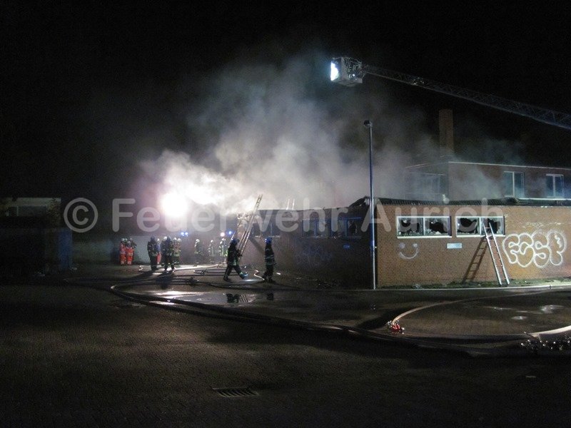 Die Ortsfeuerwehr Aurich wurde in der Nacht auf Donnerstag zusammen mit der DRK Bereitschaft Aurich und, bedingt durch das Einsatzstichwort, dem ELW 2 aus Middels zu einem Brand in einer Tischlerei im Hoheberger Weg gerufen. Den Auricher Kameraden war diese Adresse sehr wohl bekannt. Der Betrieb war über viele Jahrzehnte ein Unternehmen der Familie von Essen - dem ehemaligen Kreisbereitschaftsführer LK Aurich-Süd und Zugführer der Ortsfeuerwehr Aurich.