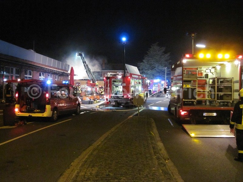 Zum Zeitpunkt der Ankunft an der Einsatzstelle schlugen Flammen aus mehreren Fenstern und dem Dach der Werkstatt. Zusätzlich drang dichter dunkler Rauch aus allen Ritzen des Flachdachbaus. Die enorme Hitze machte einen Innenbrandbekämpfung unmöglich. Es wurde schnell deutlich, dass dieser Gebäudeteil nicht mehr zu retten war. Die Einsatzkräfte konzentrierten sich daraufhin auf den Schutz des Wohngebäudes, in dem sich eine Wohnung im ersten Obergeschoss befand. Die Bewohner wurden rechtzeitig von Passanten vor dem Eintreffen der Feuerwehr aus dem Bett geklingelt.
