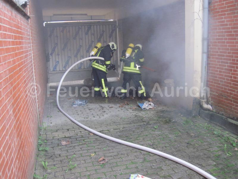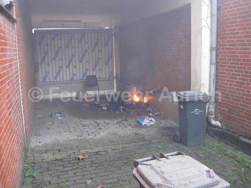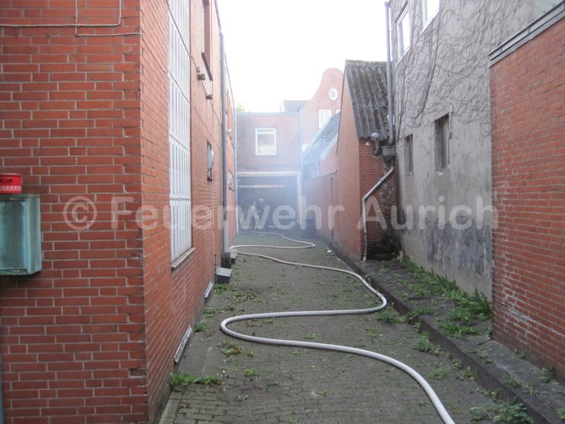 Am Sonntagnachmittag wurde die Ortsfeuerwehr Aurich zu einem Kleinbrand in der Innenstadt gerufen. In einem Hinterhof eines Geschäftes brannte eine kleinere Menge Abfall. Das Feuer wurde durch den Angriffstrupp des HLF abgelöscht.