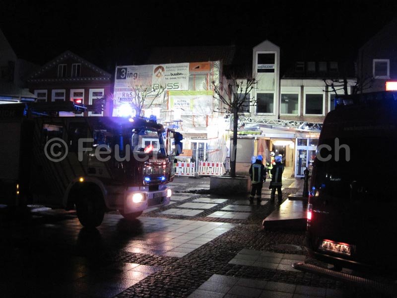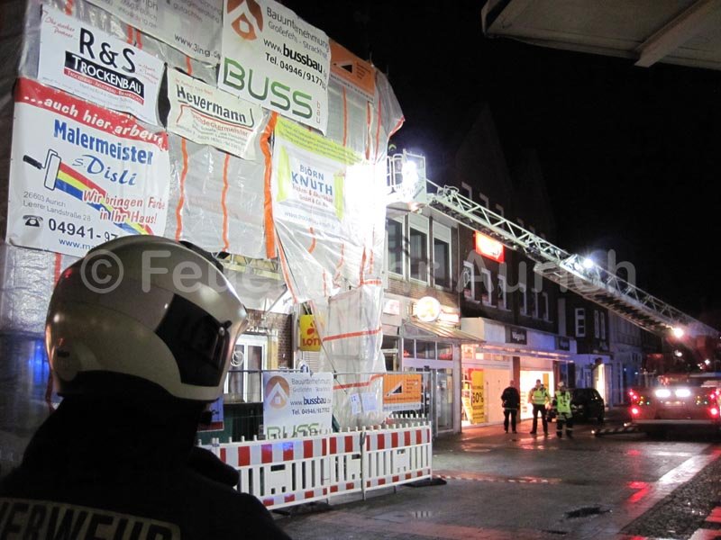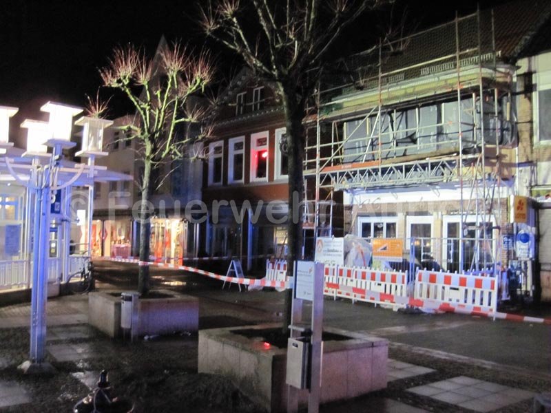 Am Freitagabend drohte auf dem Marktplatz ein Baugerüst umzustürzen. Gegen 22.55 Uhr wurde die Ortsfeuerwehr Aurich zur Sicherung des Gerüstes alarmiert. Diese rückte mit dem ELW, HLF und der DLK zur Einsatzstelle aus.