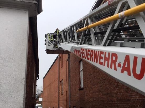 In etwa 6 Metern Höhe hatte sich eine Taube in einem Band an einer Dachrinne verfangen.Die Taube wurde kurzerhand befreit und konnte leicht angeschlagen einer nahegelegenen Tierhandlung übergeben werden.