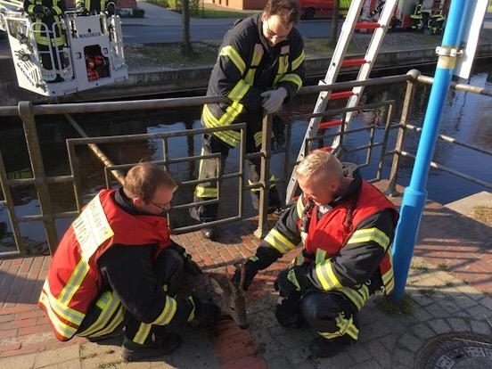 Zu einer Tierrettung am Auricher Hafen wurde gegen 8:34 Uhr die Feuerwehr Aurich gerufen.Ein junger Rehbock hatte sich in das Hafenbecken verirrt und kam nun von allein nicht wieder hinaus.