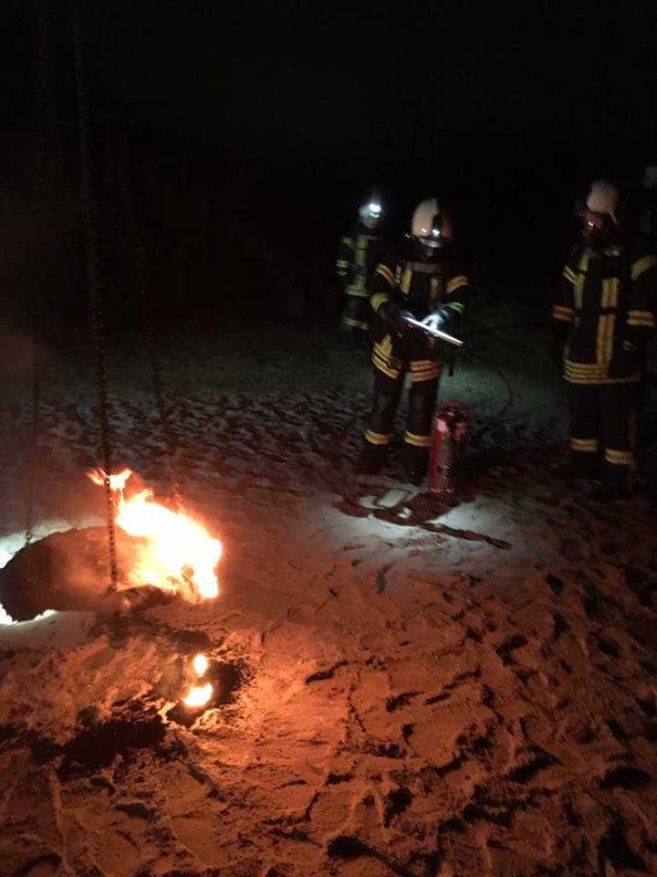 Auf einem Spielplatz sollte laut Anrufern eine Schaukel brennen. Nach Anrücken der Kräfte konnte das Feuer durch einen Trupp zügig abgelöscht werden.
