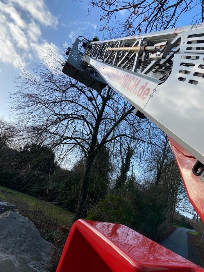Am Sonntag Vormittag wurde die Drehleiter der Feuerwehr Aurich telefonisch zu einer Tierrettung nach Wallinghausen gerufen. Eine Katze war seit längerer Zeit in einer Baumkrone und kam aus eigener Kraft nicht mehr herunter.Die angerückten Kräfte brachten die Leiter in Stellung und verhalfen der Katze wieder festen Boden unter den Pfoten zu haben. Im Einsatz war die Feuerwehr Aurich mit der Drehleiter, der Stadtbrandmeister, sowie der Ortsbrandmeister der Feuerwehr Wallinghausen.