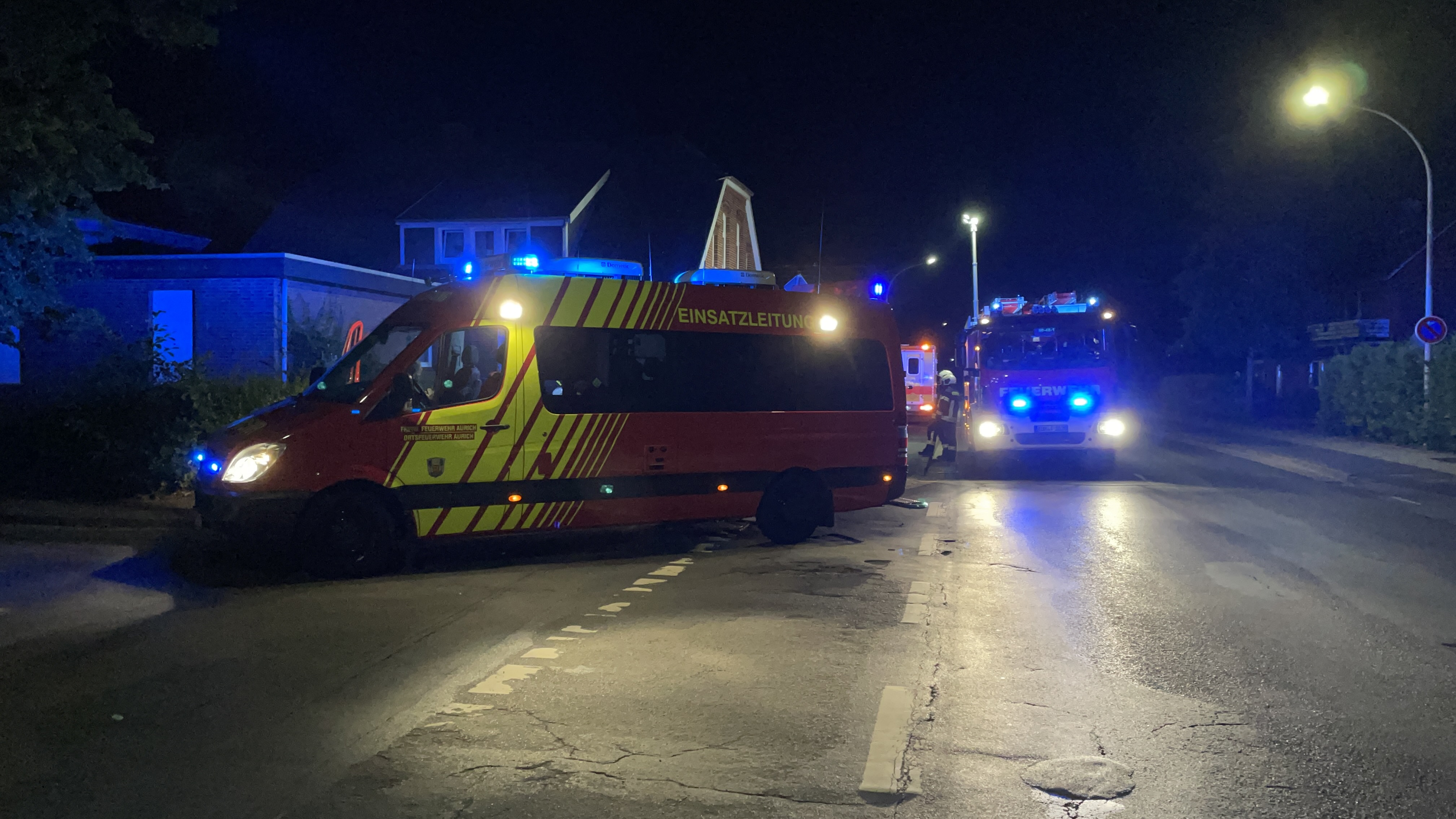 Etwas unsanft wurden einige Kräfte der Feuerwehr Aurich in der Samstagnacht durch ihre Meldeempfänger geweckt. Bei der Kooperativen Regionalleitstelle in Wittmund hatte sich eine Person gemeldet, welche durch eine Textnachricht eines Bekannten via eines Messengerdienstes über dessen Unwohlsein und Hilfsbedürftigkeit in Kenntnis gesetzt wurde. Da an der Wohnadresse aber niemand die Tür öffnete, wählte die Person den Notruf. Angerückte Einsatzkräfte der Feuerwehr entdeckten auf Kipp stehende Fenster im Erdgeschoss, durch die ein schneller und schadfreier Zugang geschaffen werden konnte. Die zuerst in das Wohnhaus vorgegangene Polizei fand die betroffene Person dann auf dem Sofa liegend, aber sich augenscheinlich nicht in einem akuten Notfallzustand befindlich, vor. Während der Rettungsdienst weitere Untersuchungen vornahm, konnte die Feuerwehr Aurich wieder einrücken.