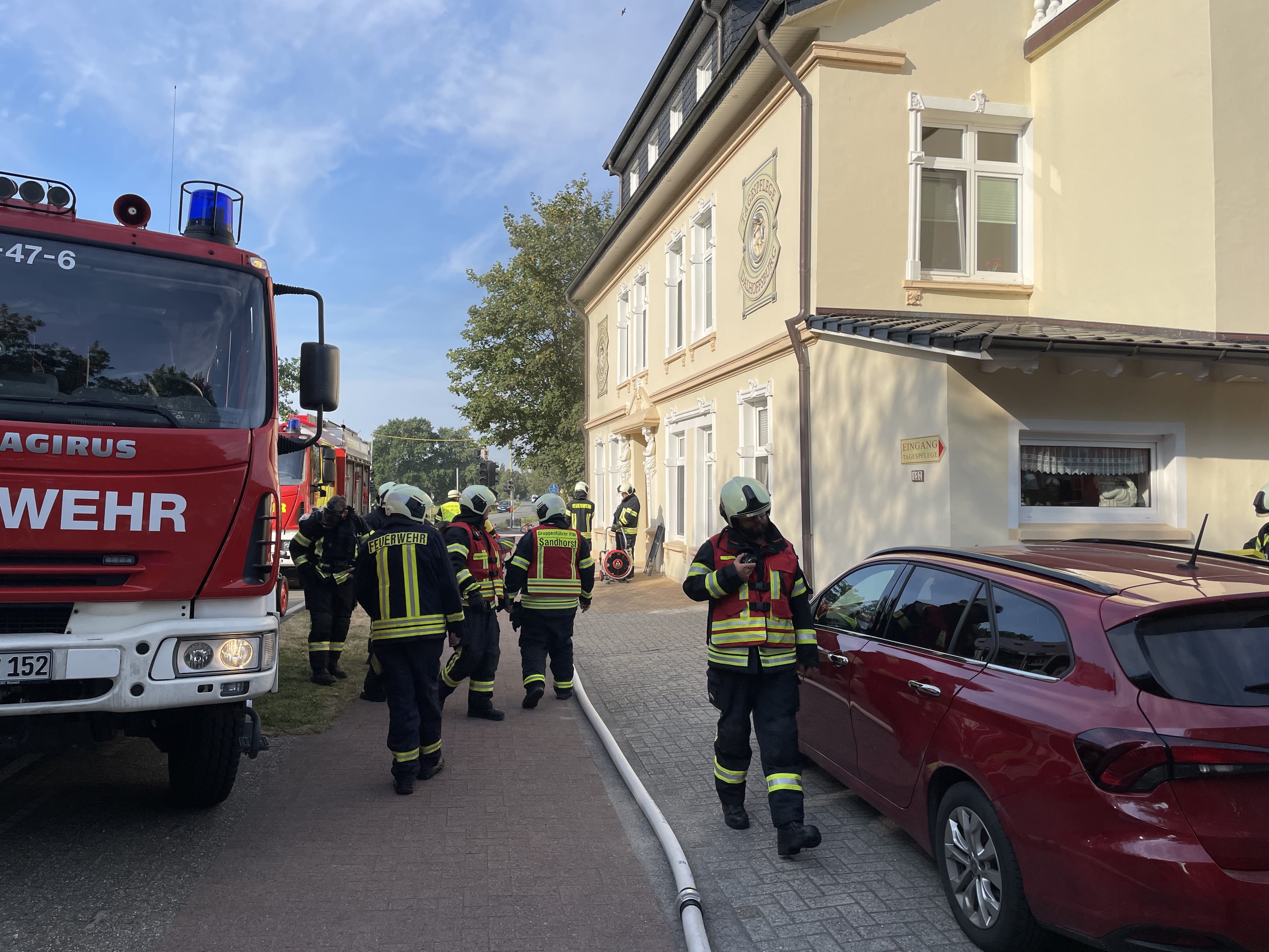 Während alle zu betreuenden Personen das Gebäude bereits sicher verlassen hatten, quollen dichte Rauchschwaden aus dem Kellergeschoss der Einrichtung. Ein Trupp unter Atemschutz ging umgehend vor und bekämpfte das Feuer. Parallel wurden Lüftungsmaßnahmen von zwei Seiten des Objektes eingeleitet. Das gezielte Zusammenspiel zeigte bereits zeitnahe Wirkung, wodurch der Brand wenig später als gelöscht vermeldet werden konnte. Anschließend wurde das Brandgut aus dem Keller heraus befördert, die Lüftungsmaßnahmen noch einige Zeit fortgeführt und das Objekt vorsorglich durch den Energieversorger stromlos geschaltet.