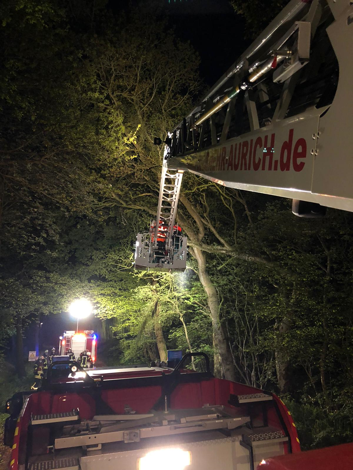 Der vierte Einsatz am Pfingstsonntag galt der Unterstützung der Feuerwehr Haxtum. Eine etwa fünf Meter hohe Birke war gebrochen und drohte umzustürzen. Um ein sicheres Arbeiten in dieser Höhe zu gewährleisten, wurde die Drehleiter angefordert. Mit vereinten Kräften konnte die Gefahr nach einer etwa zweistündigen Abtragung des Baumes als beseitigt erklärt werden.Quelle oder weiterführende Informationen