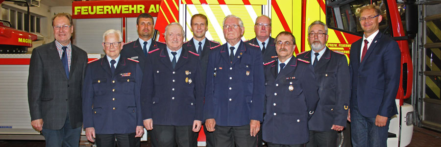 Aus gutem Grunde hatte die Ortsfeuerwehr Aurich Vertreter aus Rat, Verwaltung und dem Feuerwehrwesen neben den Mitgliedern der Wehr zu einer Dienstversammlung am Freitagabend eingeladen; galt es doch, gleich fünf Mitglieder für langjährige Mitgliedschaften im Feuerwehrdienst zu ehren.