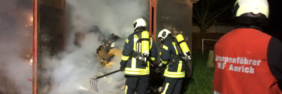 Im Normalfall kann die Ortsfeuerwehr Wiesens solche Einsätze alleine abarbeiten. Da es sich jedoch um einen großen Abrollcontainer handelte alarmierte die Leitstelle die OF Aurich zur Unterstützung.