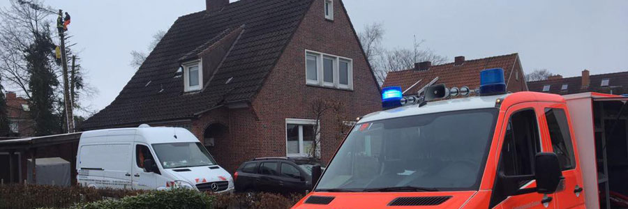 Bei Baumfällarbeiten ist ein Sägenführer in 15 Meter Höhe am Baum verunfallt. Da sich der Baum im hinteren Gartenteil eines Grundstückes in der Tom Brook Straße befand und ein erreichen mit der Drehleiter nicht möglich war, wurden frühzeitig die Höhenretter der Feuerwehr Emden nachalarmiert. Bis zum Eintreffen der Höhenretter wurde eine medizinische Patientenbetreuung über die Schiebleiter eingeleitet. Der Patient war aus eigener Kraft nicht in der Lage, die Leiter abzusteigen.