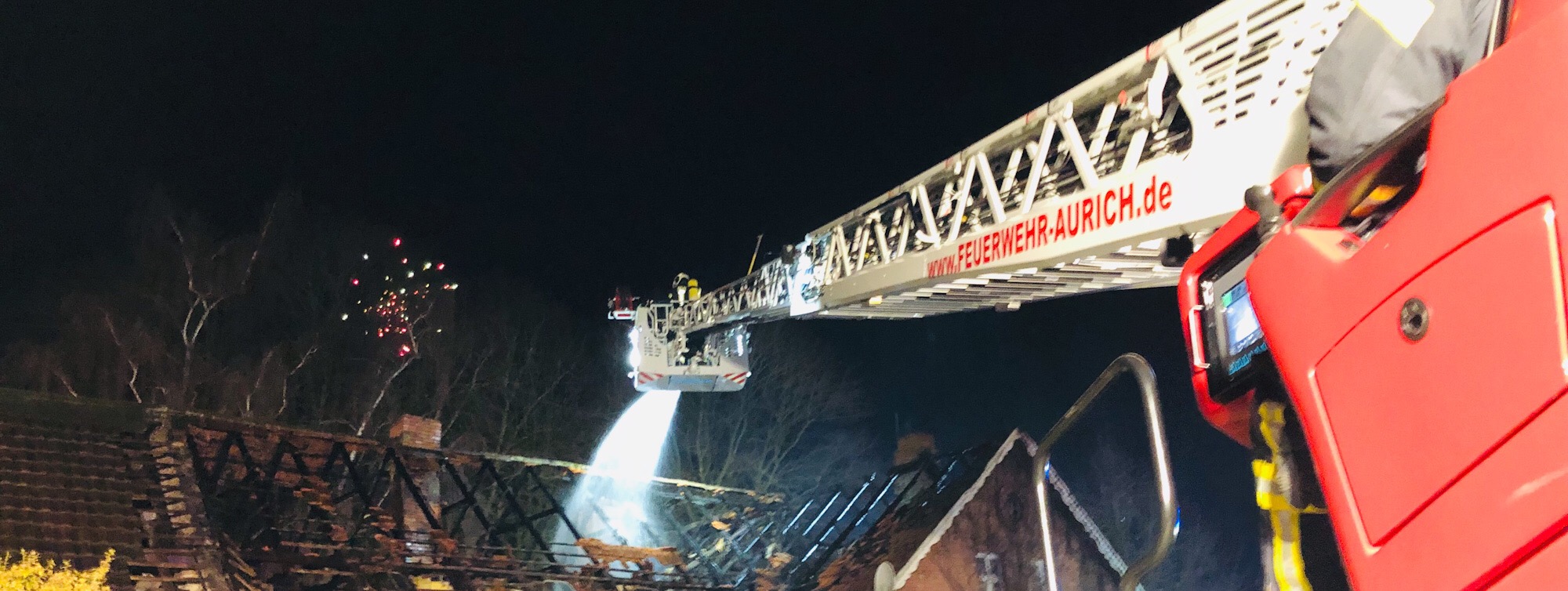 Das neue Jahr war genau 25 Minuten alt, als die Drehleiter der Feuerwehr Aurich zur Unterstützung der Feuerwehren in Südbrookmerland angefordert wurde.