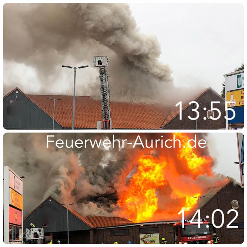 Am Montagmittag wurde die Drehleiter der Feuerwehr Aurich zur Unterstützung der Feuerwehren der Samtgemeinde Holtriem zu einem Großbrand nach Westerholt gerufen.